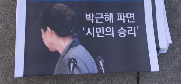 4년 전 오늘 2017년 3월 10일, 헌법재판소는 재판관 전원일치로 대통령 박근혜 탄핵 소추안을 인용하여 박근혜를 대통령직에서 파면시켰다. 국회와 헌법재판소를 견인한 민주주의 시민의 승리였다.