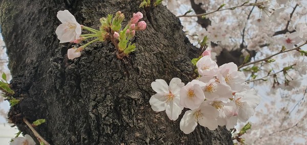 봄은 이미 내 발끝에서 머리끝까지 오고 그 봄이 온 것이 부끄러워 얼굴을 가려도 따스한 햇살이 가슴 안으로 파고드네.