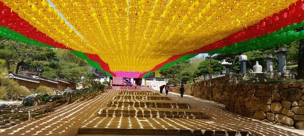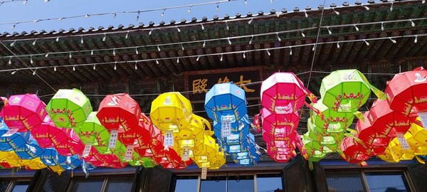 봉은사는 근무하는 사무실 인근이라 들리는데 금년으로 5년째인 거 같다. 2016년 4월에 처음 봉은사에 들렸을 때 당시 대웅전 앞에 어간등을 달았던 대통령 한 분(2016년 어간등 사진 참조)은 구속되어 아직도 감방에 계신다.