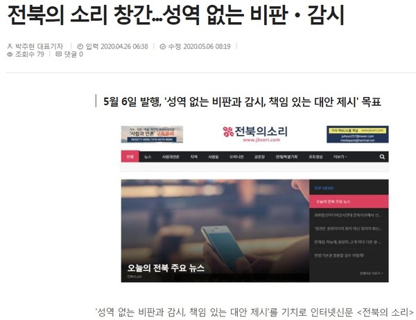 전북의소리 제호도 아주 좋으네요..드디어 인터넷신문까지..대단한 열정이시네요. 진심으로 축하드립니다