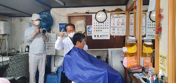 고향 백운 소재지 원촌에서 한 시절을 보낸 내가 잠시 방송 촬영차 머무는 신평 소재지의 원촌에서 이름은 같지만 풍경이 전혀 다른 원촌의 이발소에서 이미 흘러간 시절을 서로 나누는 손문국 씨와 나, 추억은 역사가 되고 삶은 현실이다.