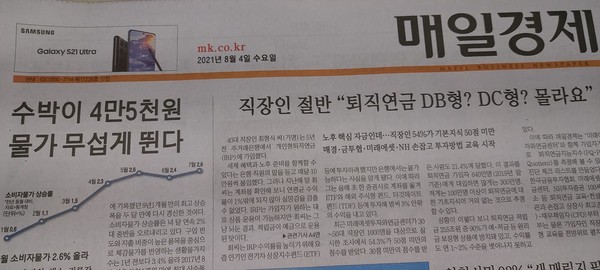 그리고 수박 2만원 짜리 한 통이 얼마나 크던지 세 식구가 3일을 먹었다. 그런데 아침 조간 경제신문을 보니 수박이 4만 5천원이란 기사가 1면에 큼지막하게 떴다.