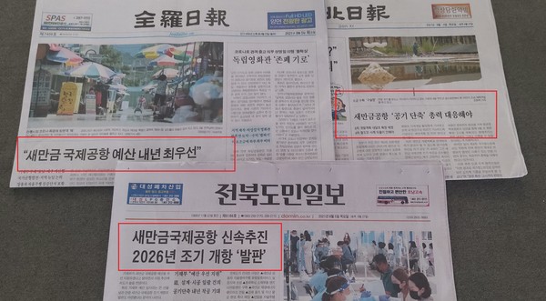 #지역신문 3사 한목소리, 새만금공항 공기단축, 총력대응 필요 강조