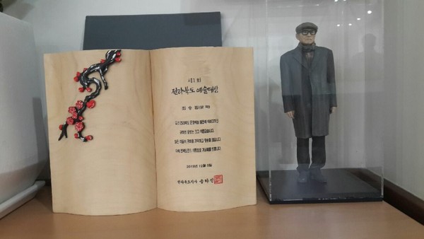 문화 예술분야의 이런저런 바지런한 활동으로 지난해 말에 고하는 전라북도 예술대상을 수상했다. 상에 욕심이 난다거나 이런 것은 없지만 내 나이에 상을 받는 사람도 없을 것이라는 데 생각이 미치면 자못 흐뭇한 것은 사실이다. 노인에게 주는 격려와 응원이라 여긴다.