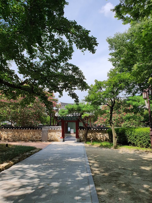 "춘향사당이 문을 꼭꼭 걸어 잠궜네 마음이 울쩍하고 광복절이라 춘향 사당에 참배 좀 하려고 왔더니만 이번에는 헛일이 되어 버렸네"