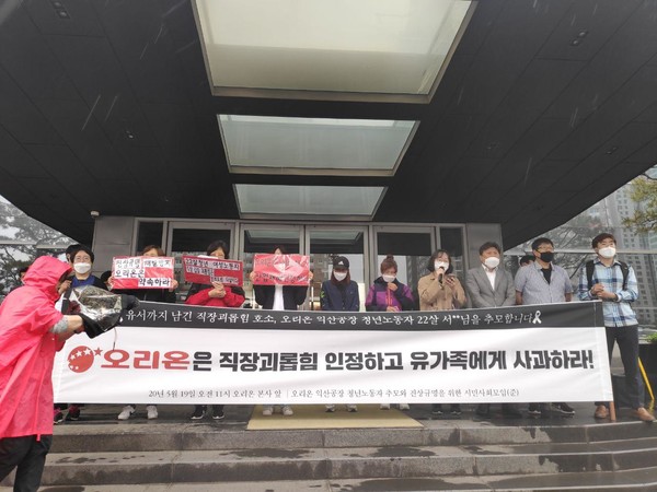 직장 괴롭힘을 호소한 유서를 남기고 오리온 청년노동자 22세 서**님이 목숨을 끊은 지 두 달이 넘었다. 유가족과 시민사회가 고용노동부 익산지청 앞에서 특별근로감독을 촉구한 지는 한 달이 흘렀다. 그러나 여전히 오리온의 묵묵부답은 바뀌지 않았다.
