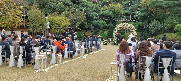 서울 충무로 도심 남산골에 600년 세월의 전통이 공존하는 대저택 야외 공간에서 치르는 혼례식으로 이런 광경은 처음 본다. 멋진 경관과 편리한 지리적 장점으로 과거에 대통령 별장으로 사용되었던 곳인데 현재는 웨딩하우스로 이용되고 있다.