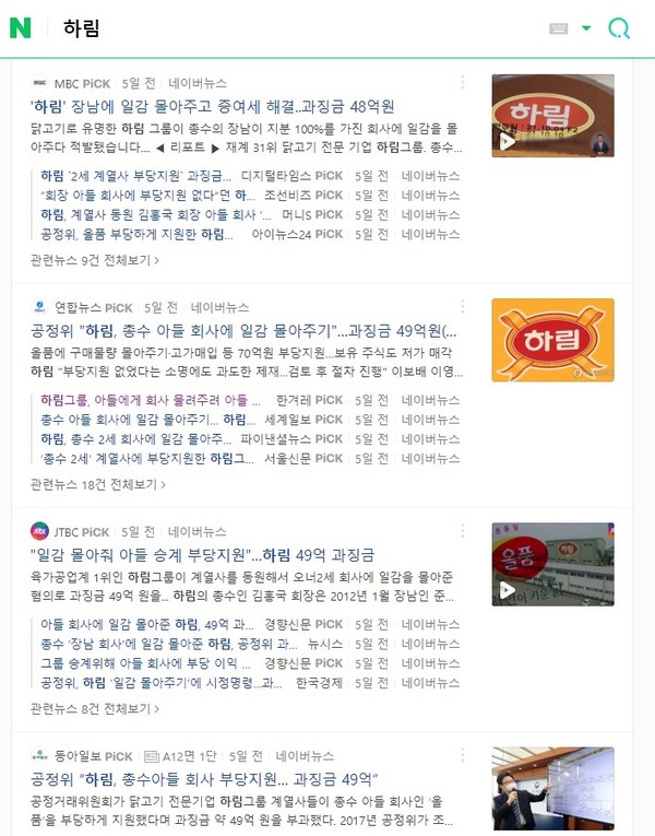 포털 사이트에서 ‘하림’ 두 글자만 검색해도 이번 공정거래위원회의 과징금 조치에 대한 관련 보도가 쏟아져 나옵니다. 그러나 지난주 일부 언론을 제외하면 지역 일간지과 지역 방송을 가리지 않고 관련 보도를 찾아보기 어려웠습니다.
