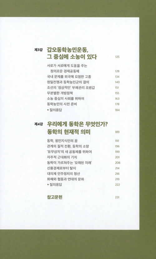 끝으로, 네 번째 강의에서는 동학이 우리에게 주는 교훈이 무엇인지를 생각해보고 싶어요. 저는 줄곧 ‘동학에서 미래를 배운다’고 말하는데요, 이는 동학의 역사와 우리의 현재를 통찰할 때 비로소 가능한 일이겠지요.