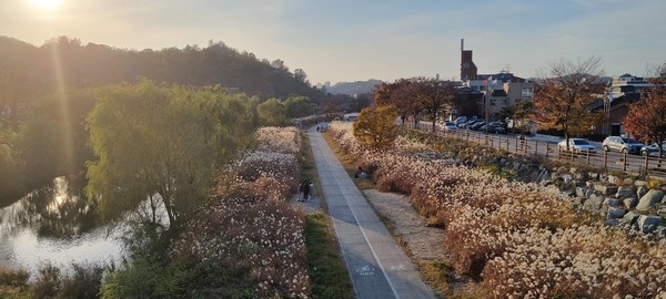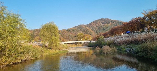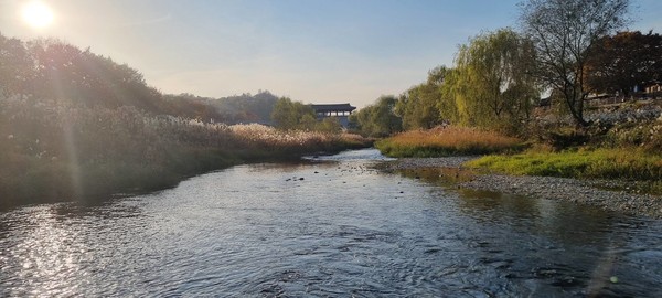 전주천에 지천으로 핀 갈꽃을 만나러 가던 길, 그 전주천, 남고산성과 승암산 일대에 산들이 오색 단풍으로 물들고, 전주천을 가로지른 청연루는 말 그대로 가을이었습니다.