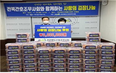 전라북도 간호조무사회(회장 최영란)는 ‘행복하고 따스한 겨울나기’를 위해 23일 종교계와 함께하는 사랑의 김장 나눔 행사를 펼쳤다.
