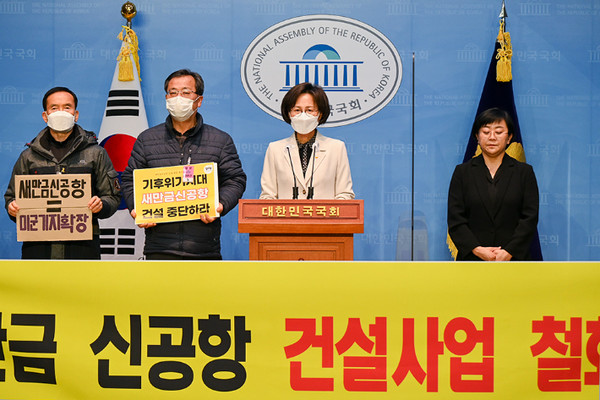 새만금신공항백지화공동행동과 정의당 기후정의선대위원회는 27일 오전 국회 소통관에서 기자회견을 갖고 “새만금 신공항 건설사업 전략환경영향평가서에 대해 환경부가 부동의가 아닌, 재보완 요구를 결정한 것에 유감의 뜻을 표한다”며 “정부는 새만금 신공항 건설 계획을 즉각 중단할 것”을 촉구했다.