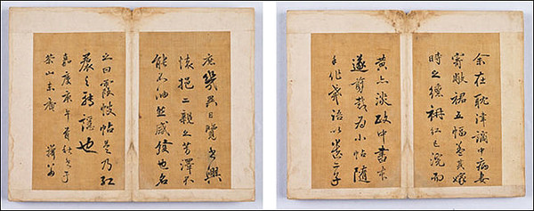 <하피첩>의 내력을 잘 아실 것입니다. 아내 풍산 홍씨가 결혼식 날 입었던 다홍치마폭을 가위로 잘라, 그 위에 "죄인" 정약용이 글도 쓰고 그림도 그린 다음 손수 표구까지 했다고 합니다. 다산은 양주 옛집에 두고온 두 아들을 생각하며, 그리고 윤씨 집안으로 시집간 딸을 그리며 <하피첩>을 만들었다고 합니다.