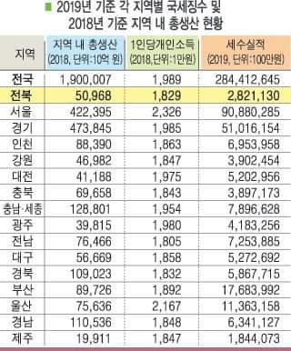 1인당 개인 소득 전북 '꼴찌'