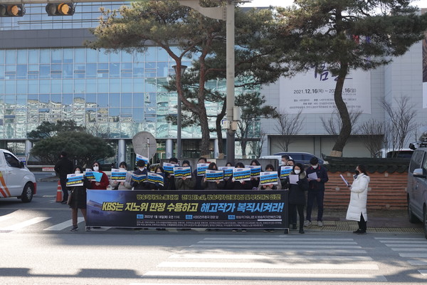 - 방송작가유니온·시민단체들 "KBS전주총국, 부당해고 인정한 작가 복직 결정하라"