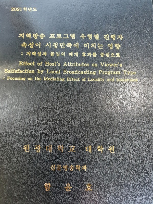 ‘지역방송 프로그램 유형별 진행자 속성이 시청만족에 미치는 영향’ 박사 논문