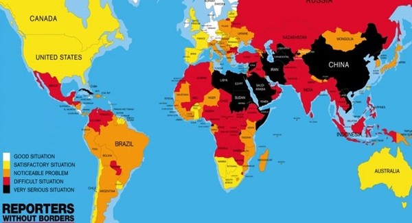 언론자유지수는 국경 없는 기자회가 평가 기관의 점수를 집계하여 매년 각 국가별로 순위를 발표하는 지표다. 국경 없는 기자회가 발송한 설문 항목을 국경 없는 기자회의 협력기관(5개 대륙의 표현의 자유와 관련된 단체들)과 전 세계의 특파원, 언론인, 연구원, 법률전문가와 인권운동가 등이 광범위하게 작성하고 평가여 매년 국가의 순위를 비교·발표한다.