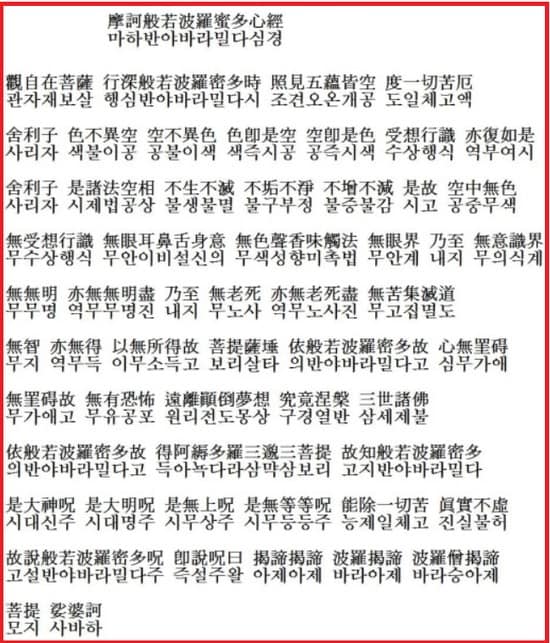 반야심경은 불교경전 가운데 가장 많이 알려지고, 한자로 불과 260자밖에 되지 않은 경전으로 그리스도교의 '주기도문'과 같은 성격의 경전입니다. 글자가 260자로 짧은 경문이지만 팔만사천 법문을 모두 다 간결하게 응축하고 있으며, 신라시대에는 한자로 된 경전밖에 없었으니 민초들에게는 여전히 어려운 경전이었을 겁니다.