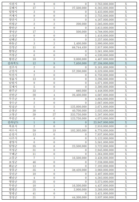 더욱 가관인 곳은 고창군이다. 전국에서 1위를 차지함으로써 가장 많은 돈을 상을 위해 썼다.