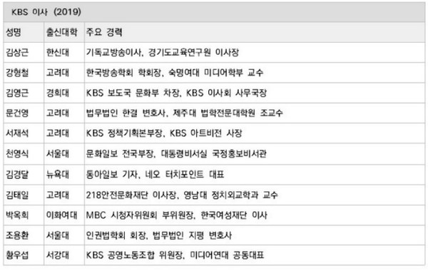 2019년 기준으로 11명의 KBS 이사의 학력과 경력을 보면, 모두 서울 소재 대학을 졸업했고, 지방소재 대학교수 2인을 제외하고는 모두 서울에서 활동해온 사람들이다. KBS 수신료의 80.5%를 지방시 청자들이 부담하고 있지만, KBS 이사회에서는 지방시청자의 권리와 지역방송 종사자의 권익을 대변할 사람들을 찾을 수 없는 현실이다.