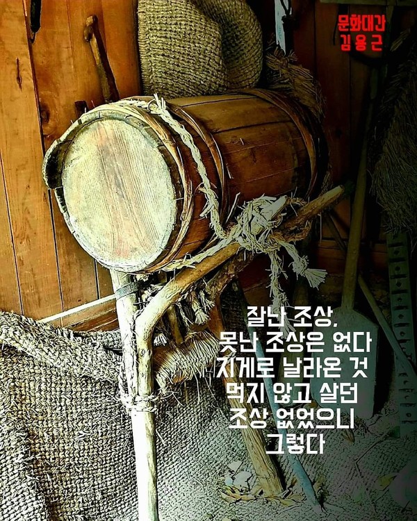 너나 없이 한 세대만 앞에 들여다 보면 똬리와 지게로 이웃이고 사촌이었다. 잘난체 해봐도 뿌리 유전자를 까면 이나 저나 황토색이다.