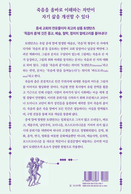 “중세 말의 토텐탄츠(죽음의 춤)를 처음 접하게 되면 섬뜩하다. 그리고 신비롭다. 그런데 바라보기만을 멈추고 토텐탄츠 속으로 들어가면 죽은 자가 산 자이고, 산 자가 죽은 자인 세상에 서게 된다. 이곳은 삶과 죽음의 경계로 인간들의 의식과 무의식 속에 항상 맴돌던 죽음이 현실화된 공간이다.”