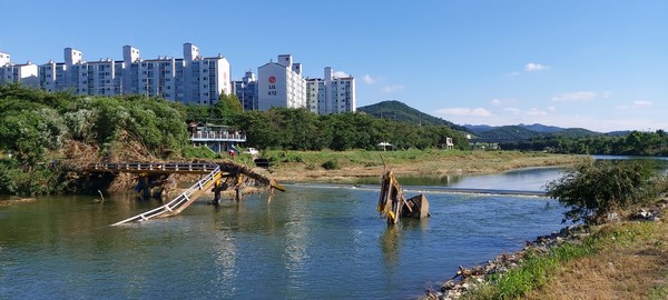 어제 저도 오랜만에 자전거를 끌고 천변으로 나가 수해현장을 둘러보니 천변에 있던 수목들은 거센 홍수 물결을 견디기가 버거웠는지 한쪽으로 쓰려져 있었고, 튼튼하게 보였던 인공 구조물들은 엿가락처럼 휘어졌고, 콘크리트로 만든 교각 하부구조물은 홍수에 밀려 무너졌고, 천변에 조성해놓은 주말농장은 완전히 폐허가 되어 흔적마저 찾아보기 힘들 정도였습니다.