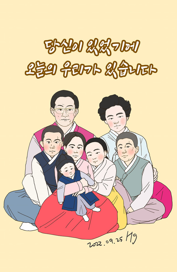 어제 행사에는 웹툰 작가로 있는 조카가 지금으로부터 53년전 저희 가족의 모습을 그림으로 그려왔는데 돌아가신 부모님 생각이 간절했습니다. 그림은 저희 가족 어린시절 사진을 보고 그렸다는데 제 얼굴은 너무 똑같이 잘 그린 것 같습니다.