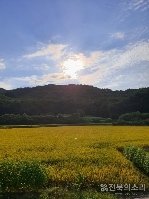 사진은 누렇게 익은 벼가 그대로 방치된 남원시 운봉읍 지리산 아래 농촌 들녘을 붉게 물들인 석양입니다. 쌀값 폭락으로 애태우는 농심이 가득 묻어나는 풍경입니다.