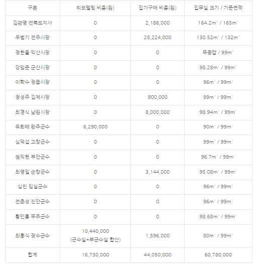 #민선 8기 전라북도 지방자치단체장은 집무실에 얼마를 썼을까?